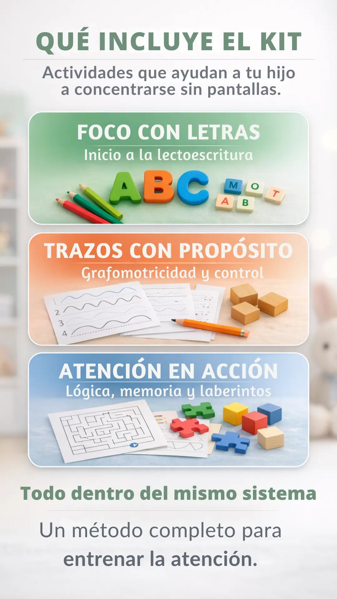 Sí. Justamente está pensado para entrenar la atención sin prohibiciones, usando juegos y actividades que reemplazan la pantalla de forma natural.